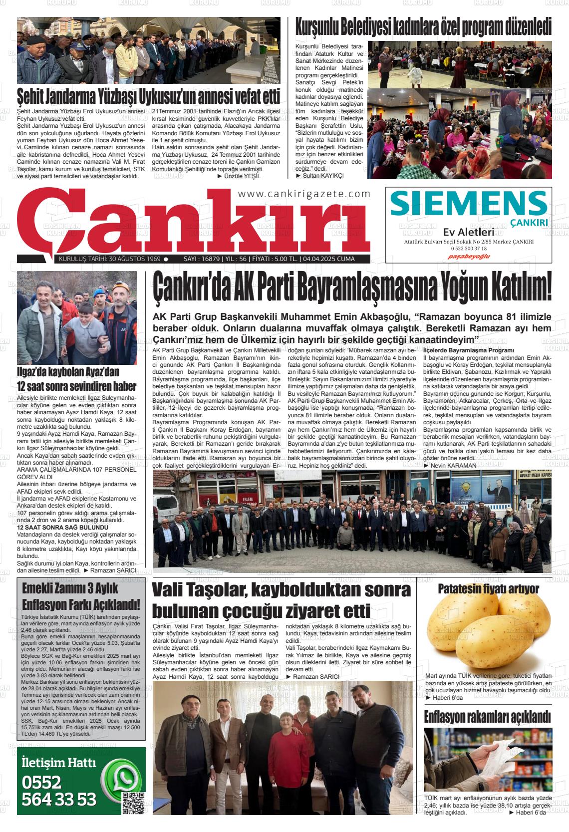 Çankırı Yerel Gazeteleri 19 Mart 2026, Perşembe Günü Manşeti
