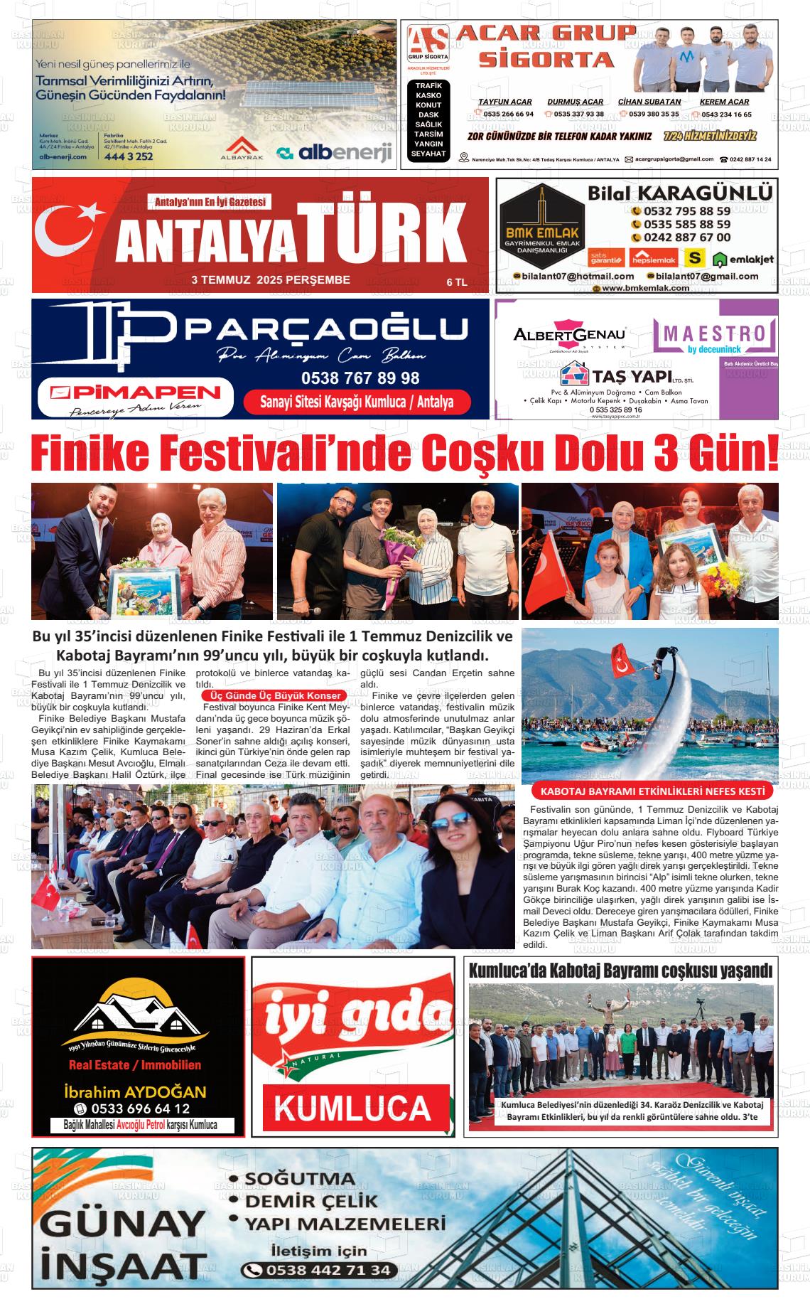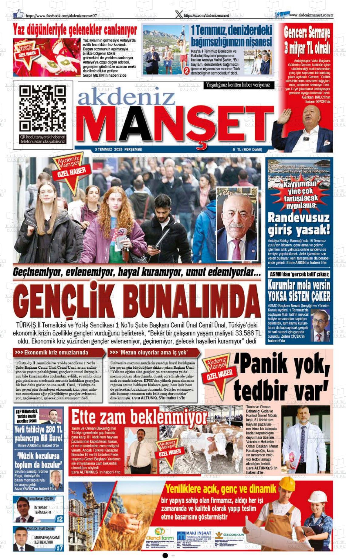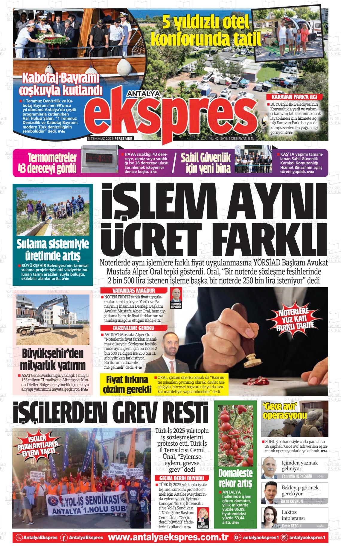 Antalya Yerel Gazeteleri 19 Mart 2026, Perşembe Günü Manşeti