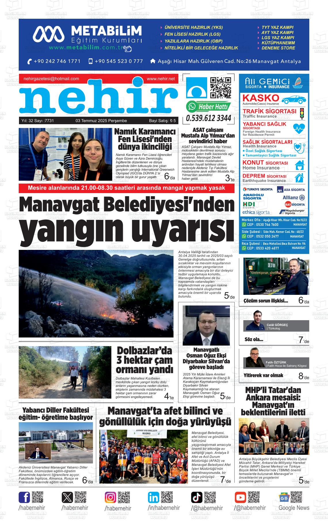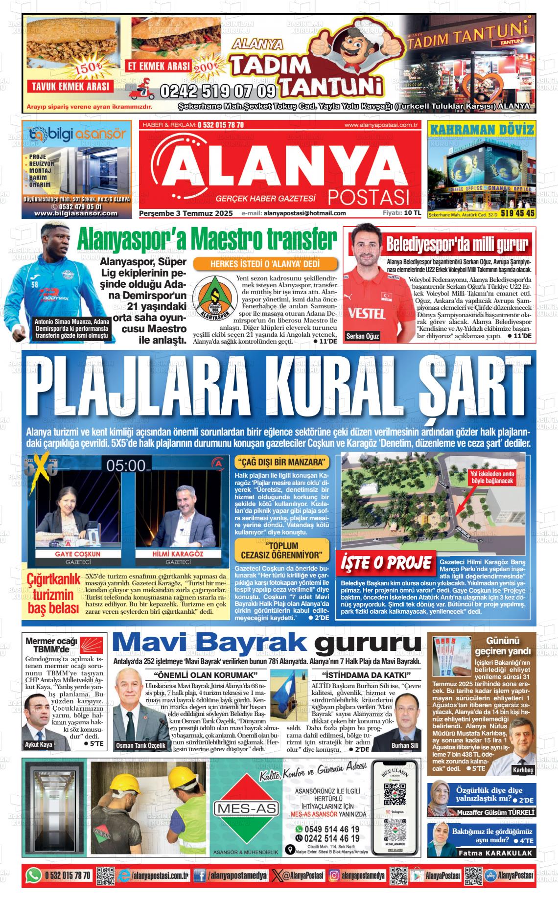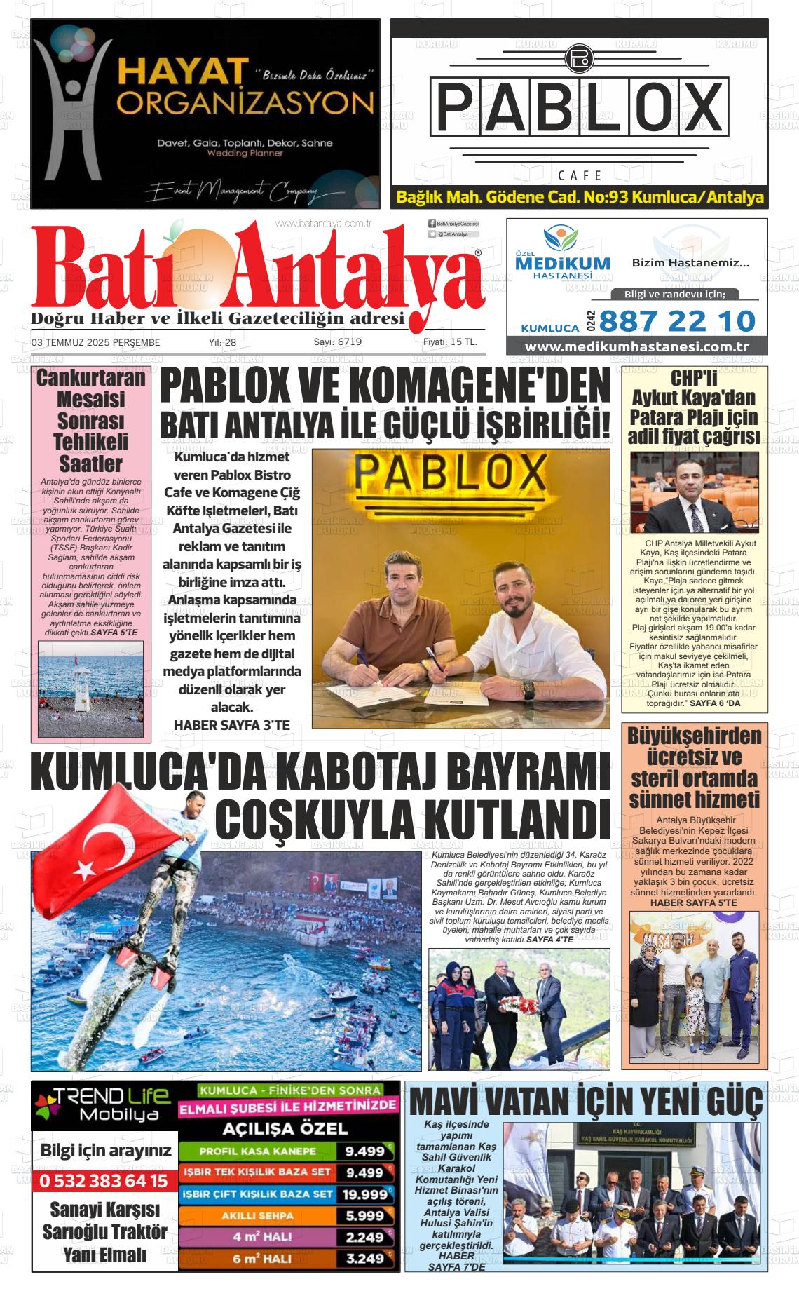 Antalya Yerel Gazeteleri 19 Mart 2026, Perşembe Günü Manşeti