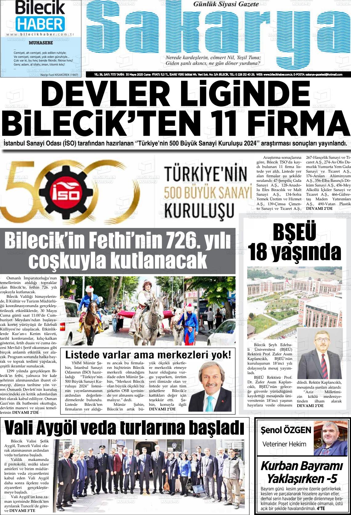 Bİlecİk Yerel Gazeteleri 04 Aralık 2025, Perşembe Günü Manşeti