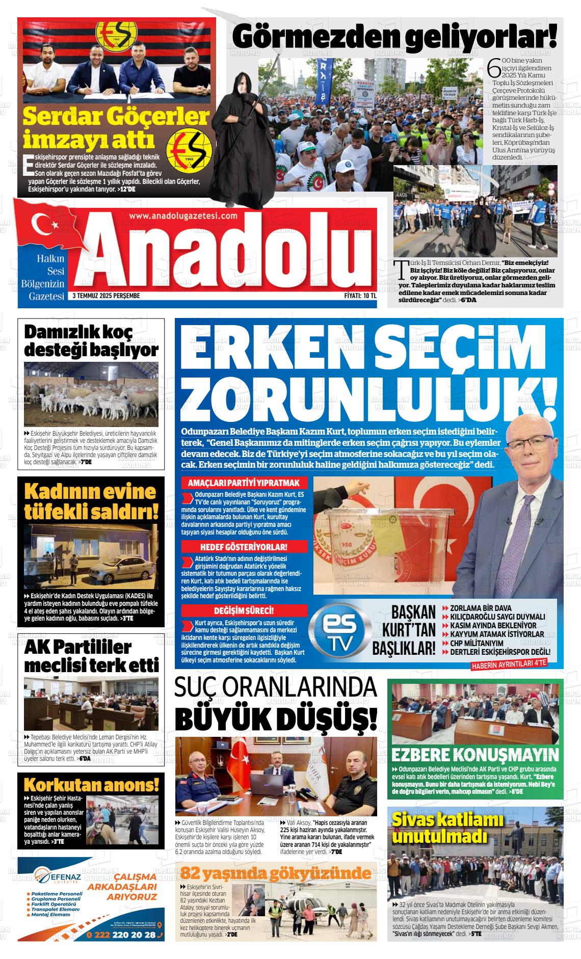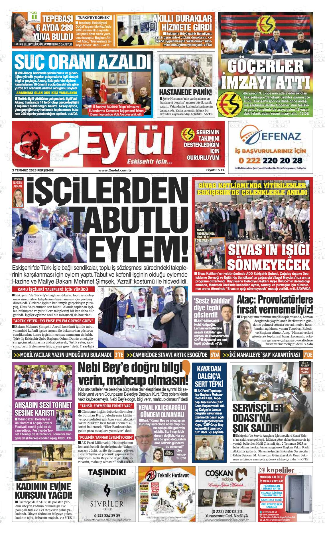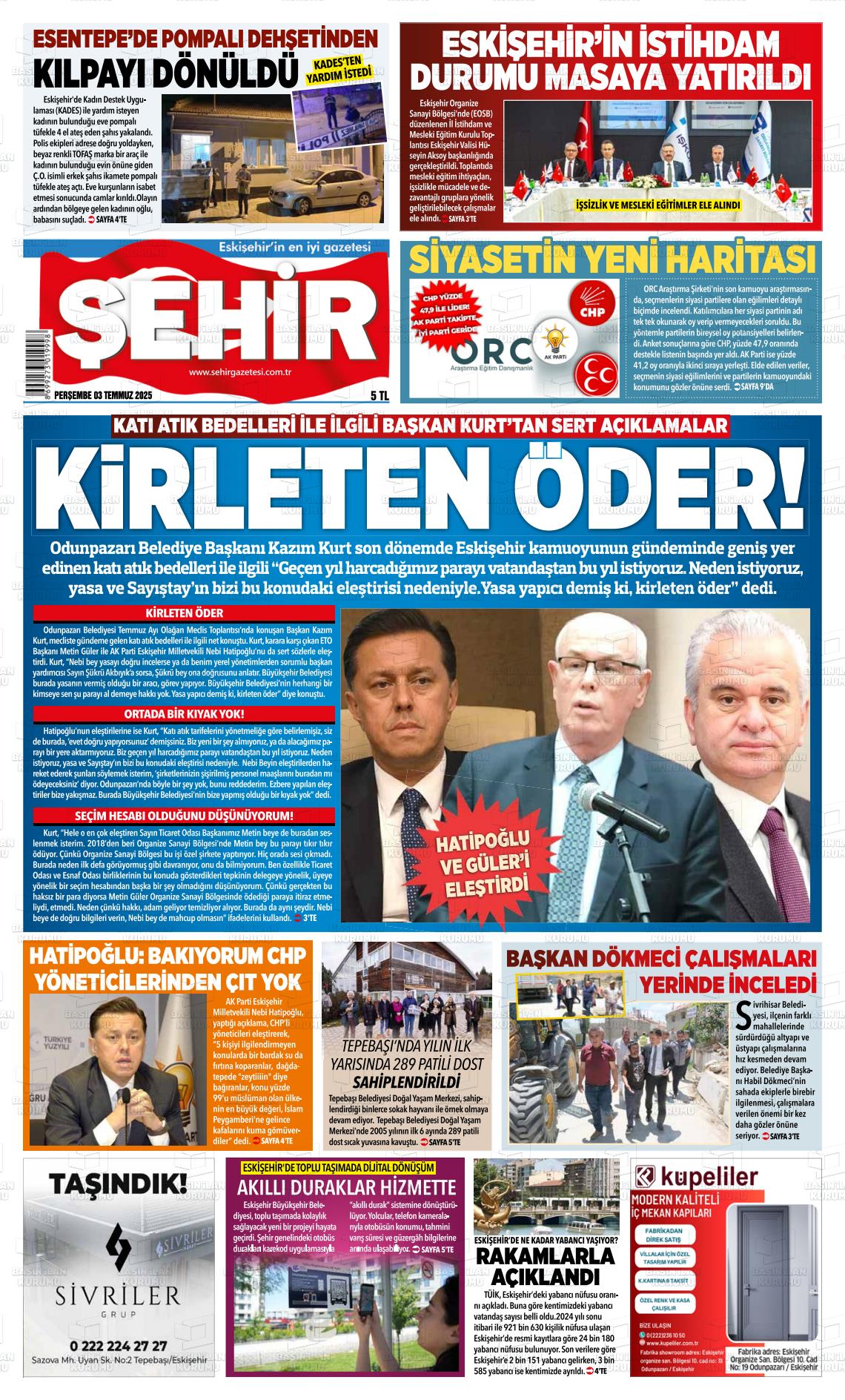 Eskİşehİr Yerel Gazeteleri 19 Mart 2026, Perşembe Günü Manşeti