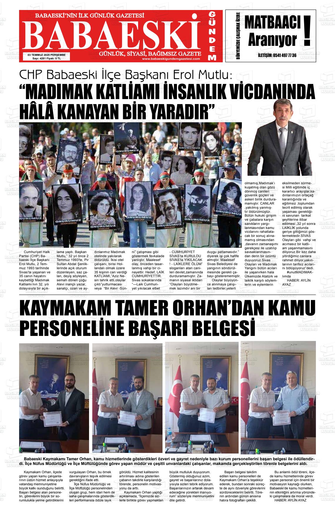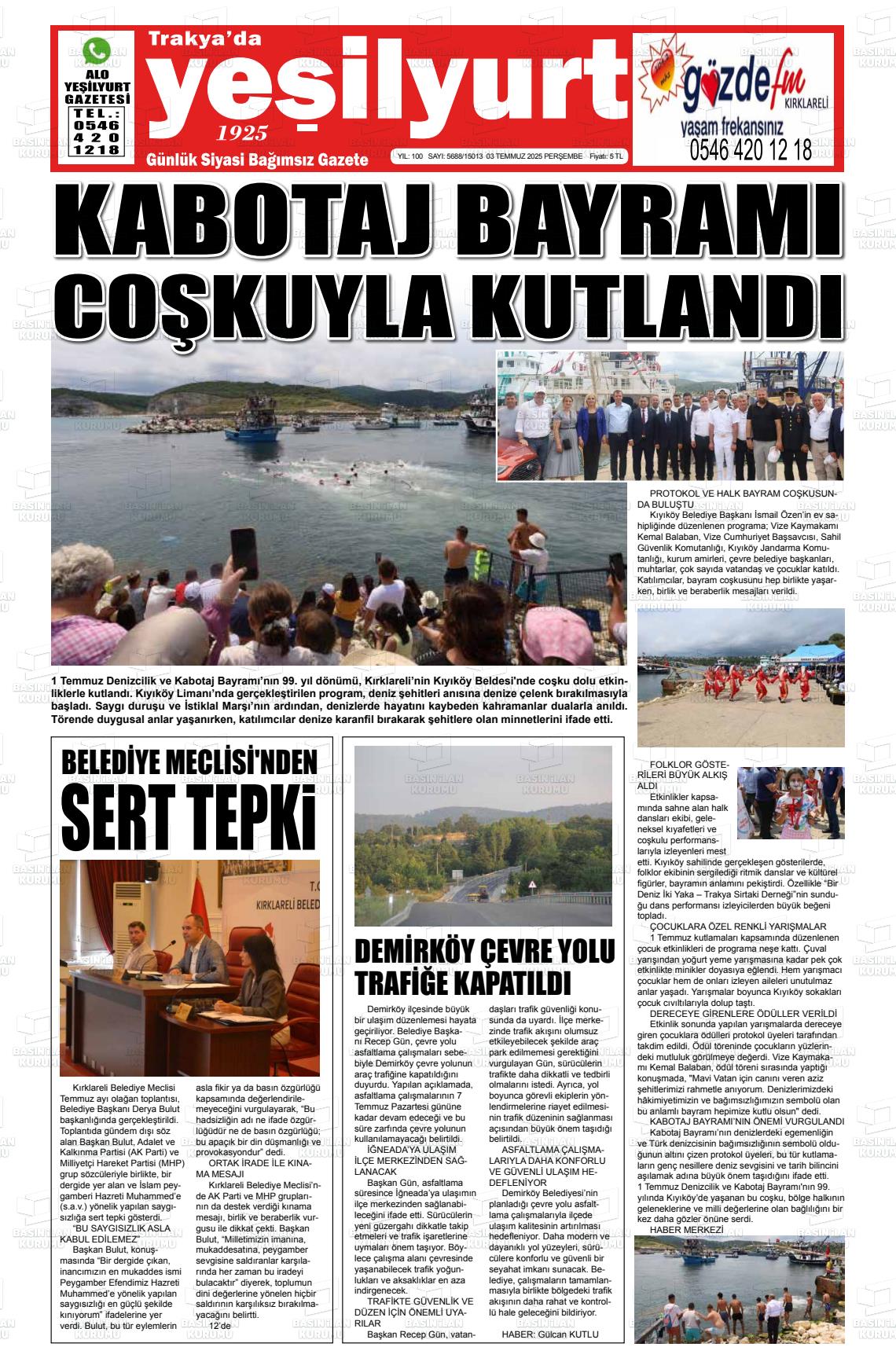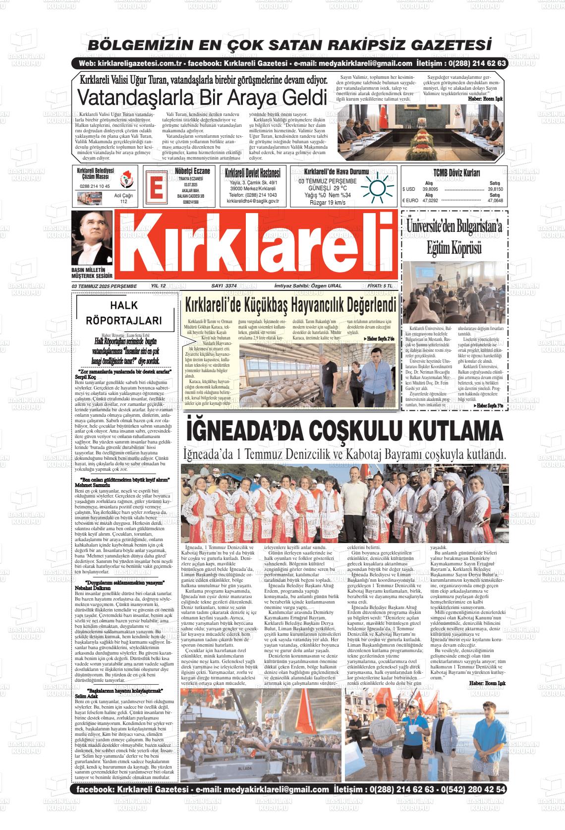 Kırklarelİ Yerel Gazeteleri 19 Mart 2026, Perşembe Günü Manşeti