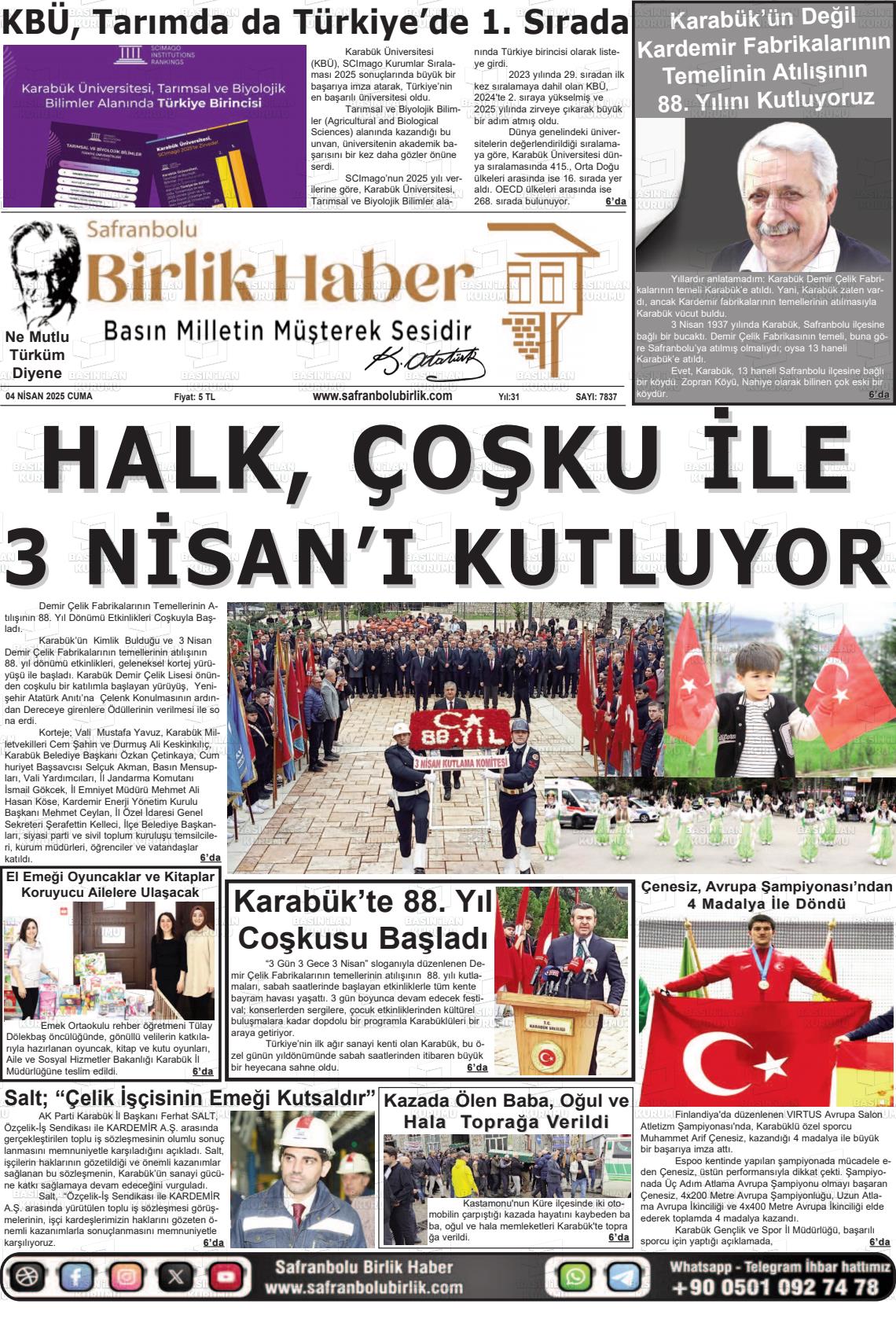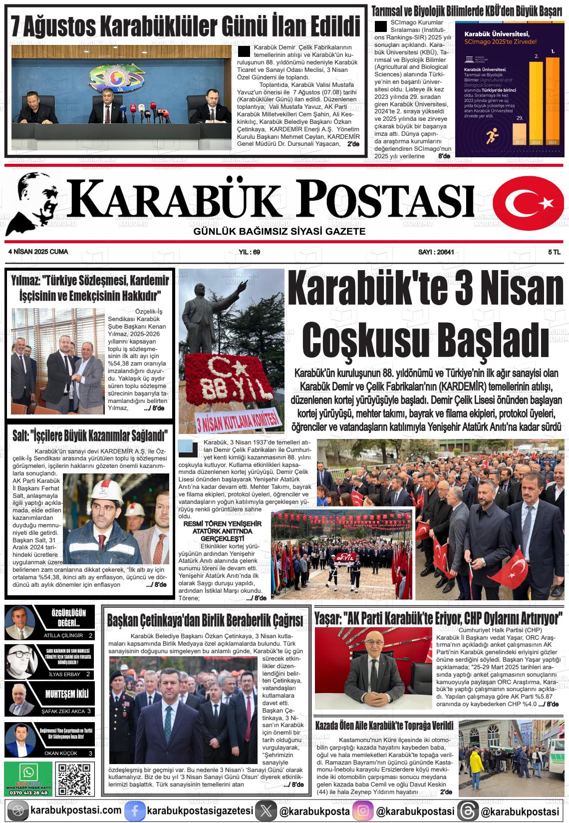 Karabük Yerel Gazeteleri 19 Mart 2026, Perşembe Günü Manşeti