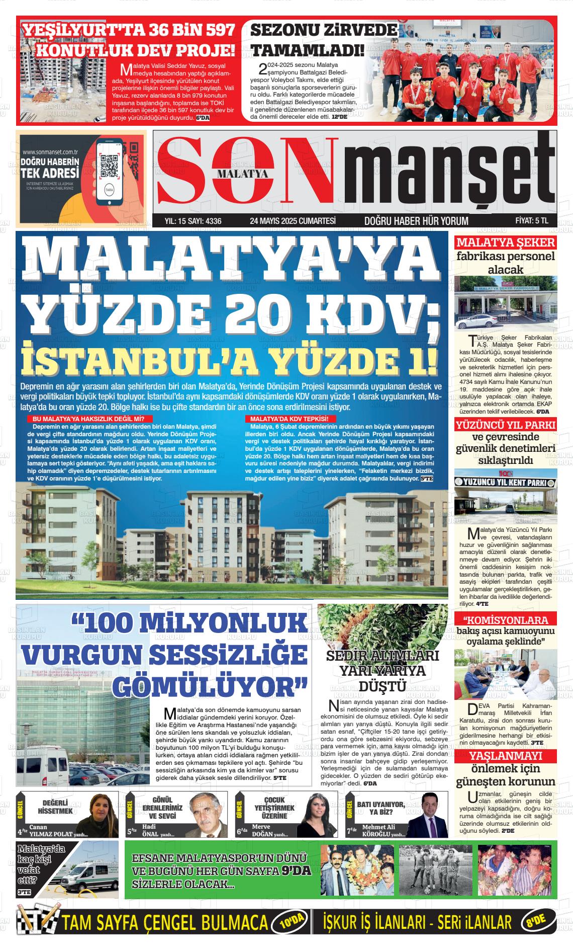 Malatya Yerel Gazeteleri 04 Aralık 2025, Perşembe Günü Manşeti