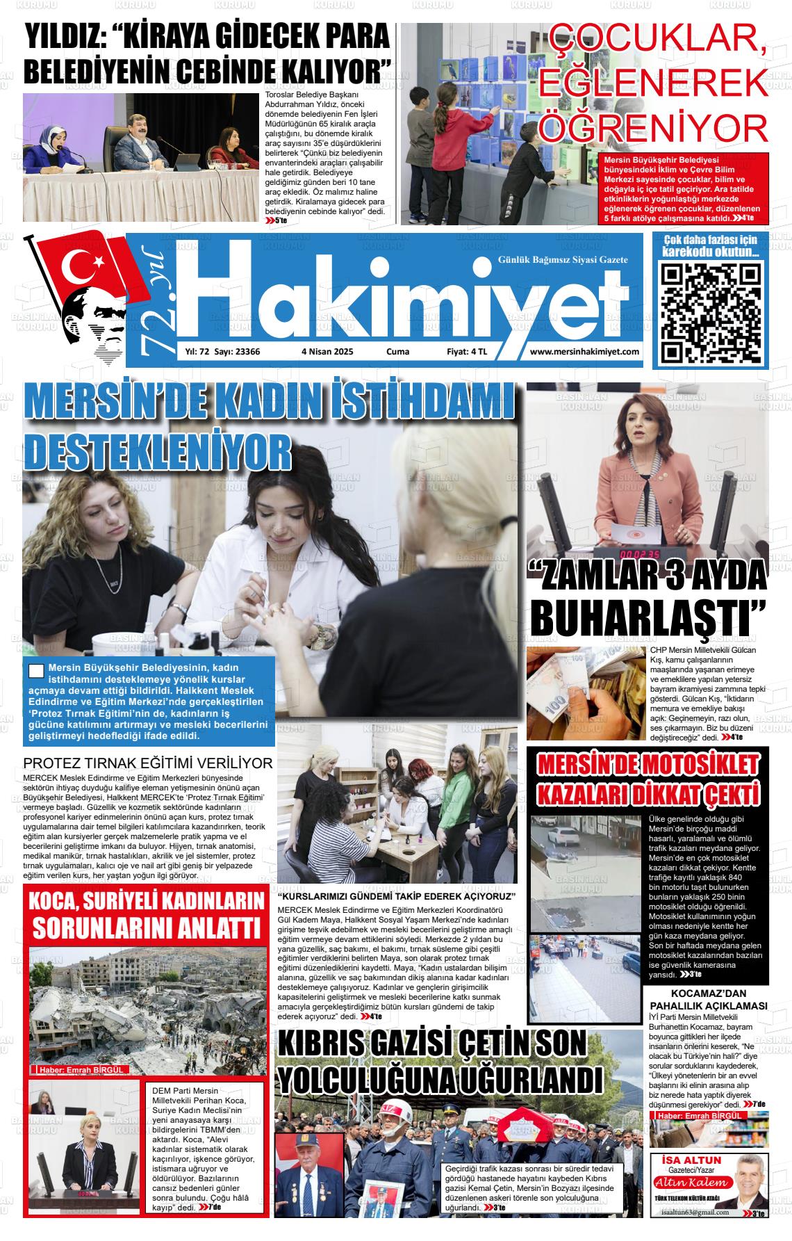 Mersİn Yerel Gazeteleri 04 Aralık 2025, Perşembe Günü Manşeti