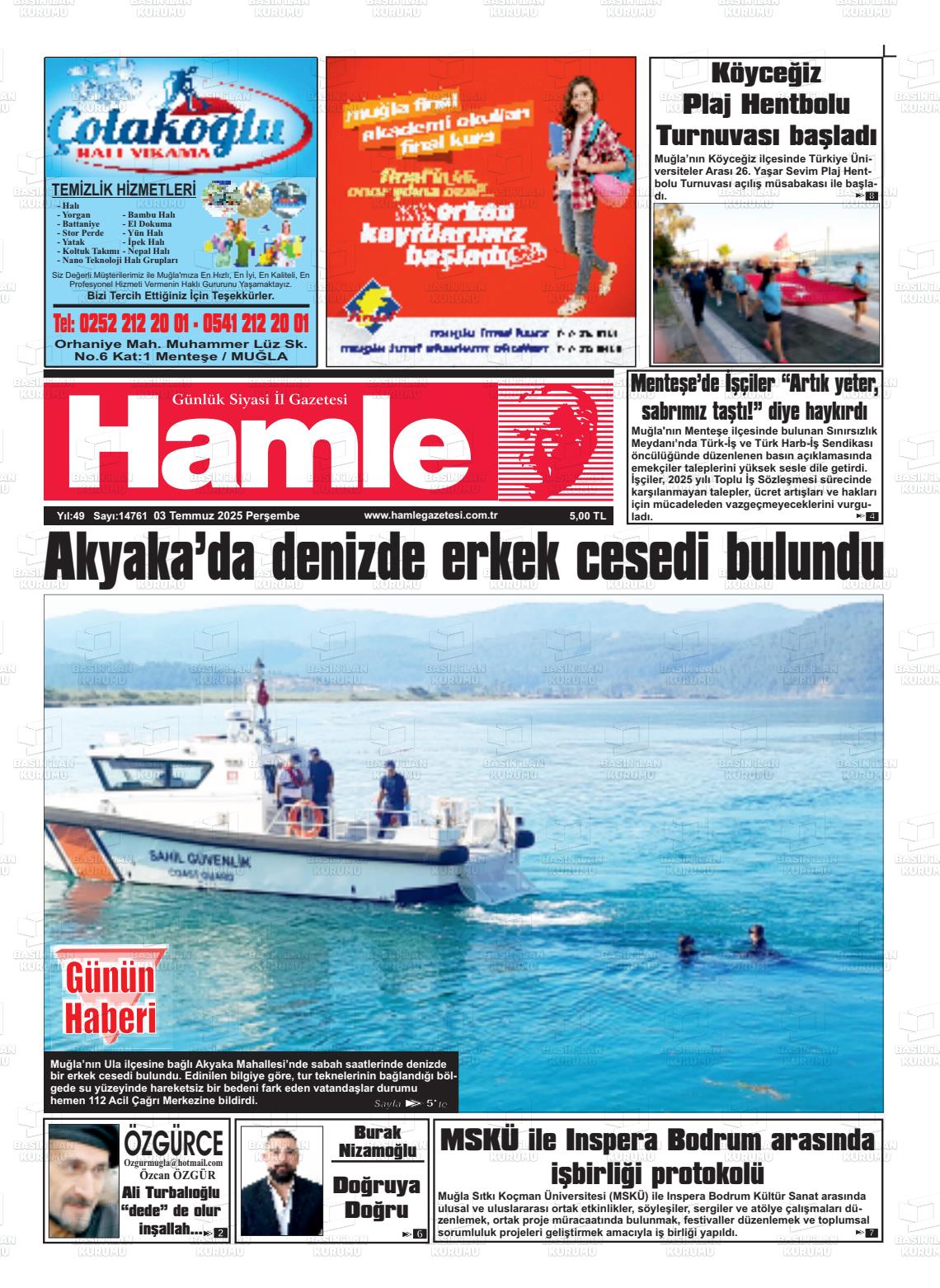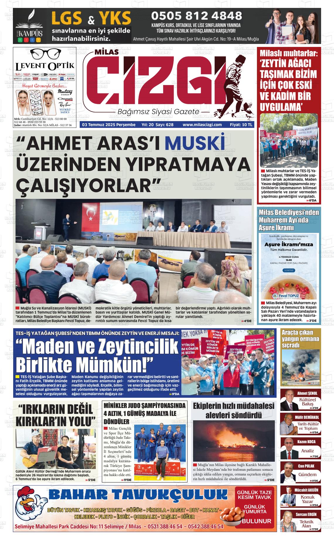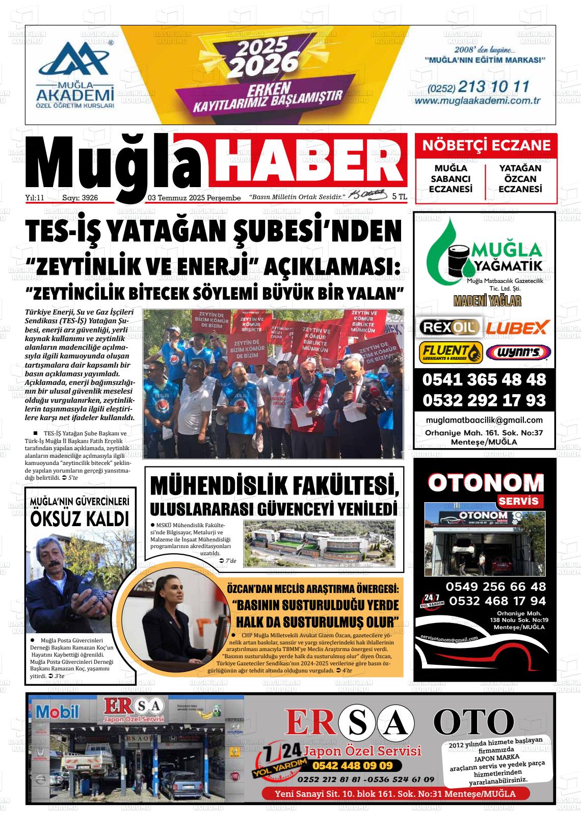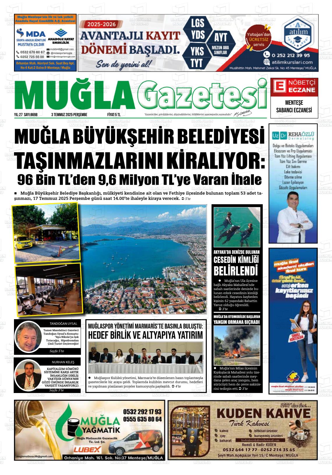 Muğla Yerel Gazeteleri 19 Mart 2026, Perşembe Günü Manşeti