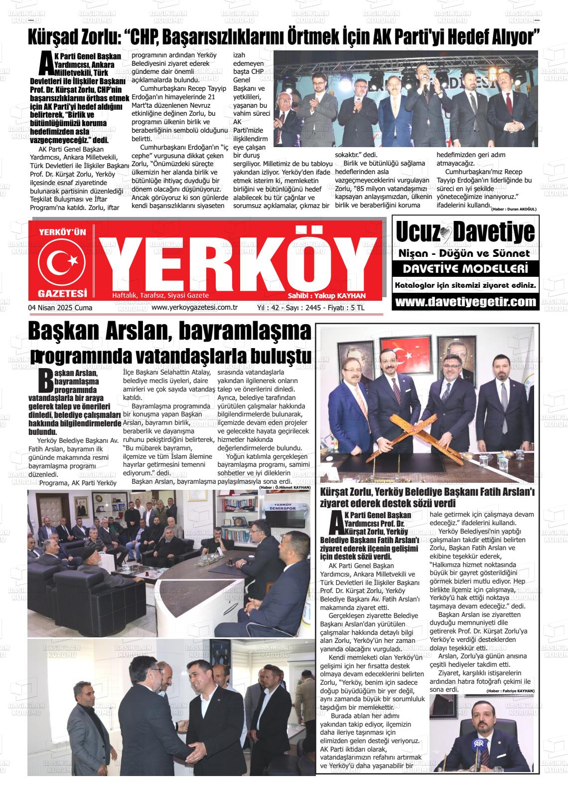 04 Aralık 2025, Perşembe Günü Manşeti