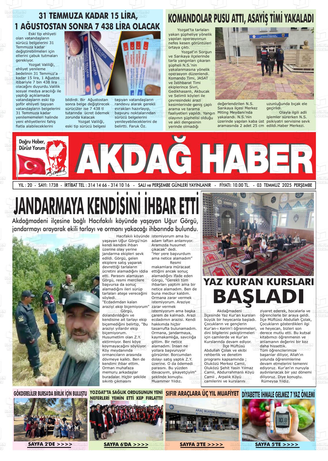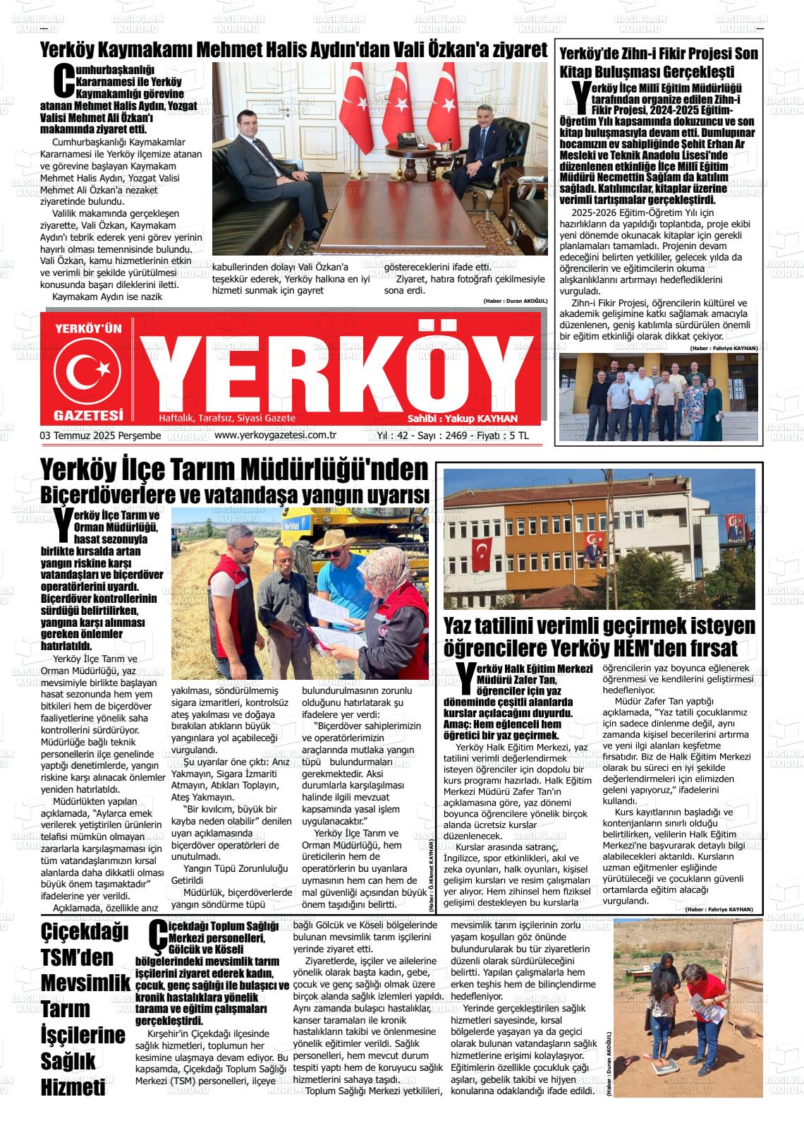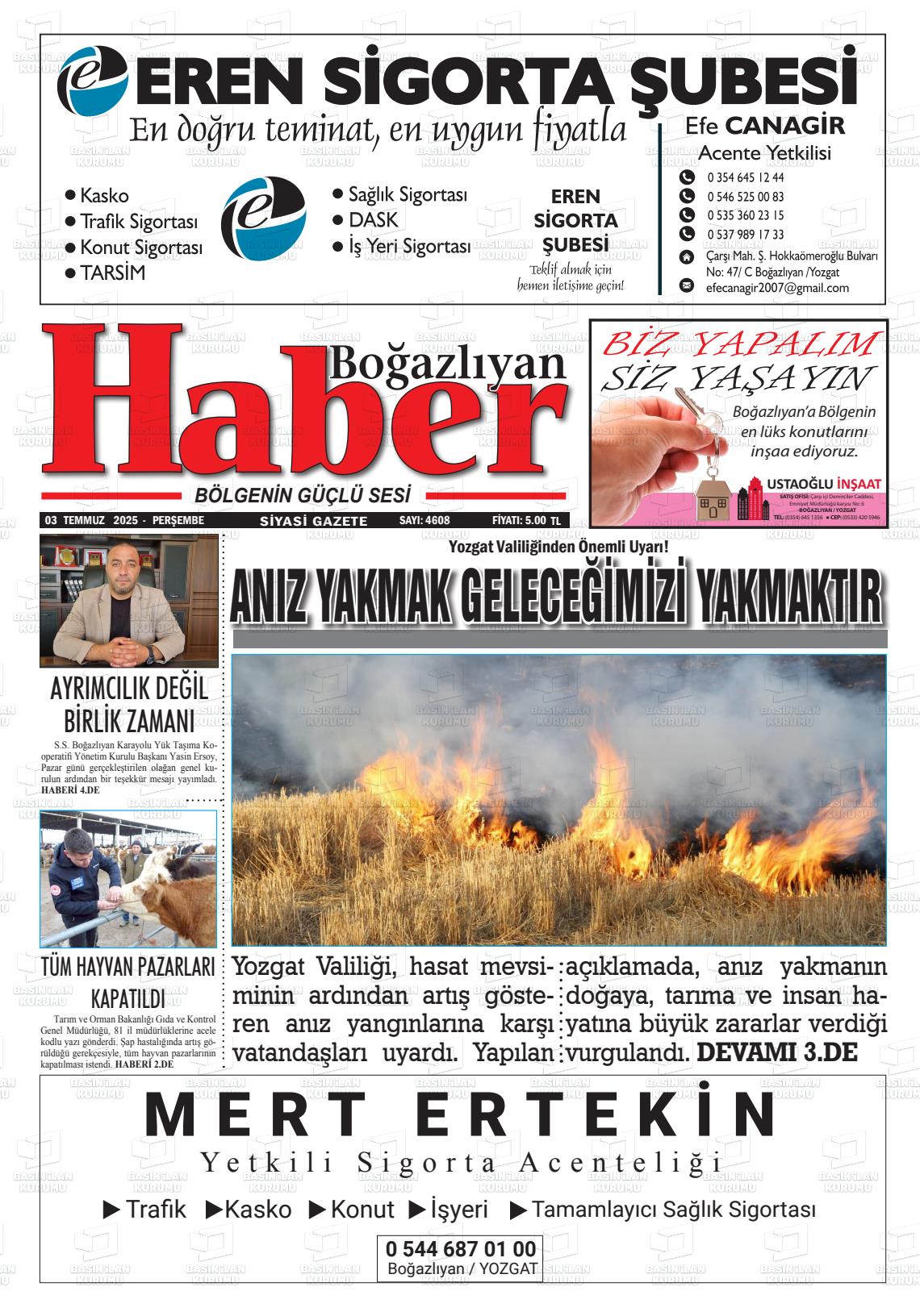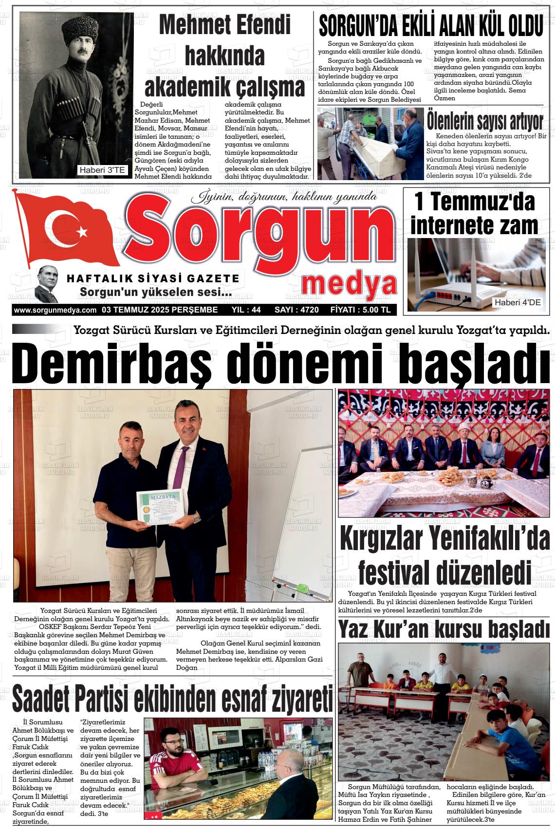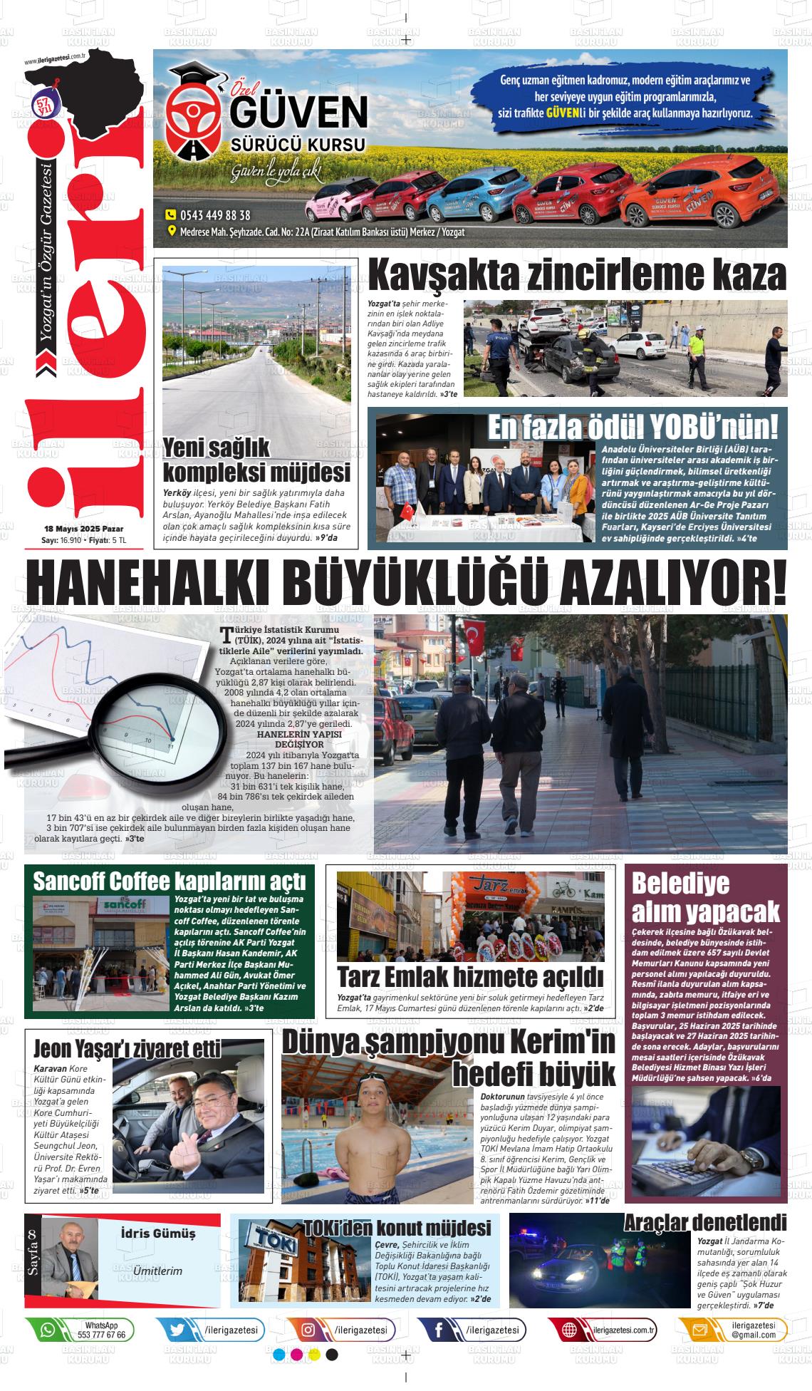 Yozgat Yerel Gazeteleri 19 Mart 2026, Perşembe Günü Manşeti
